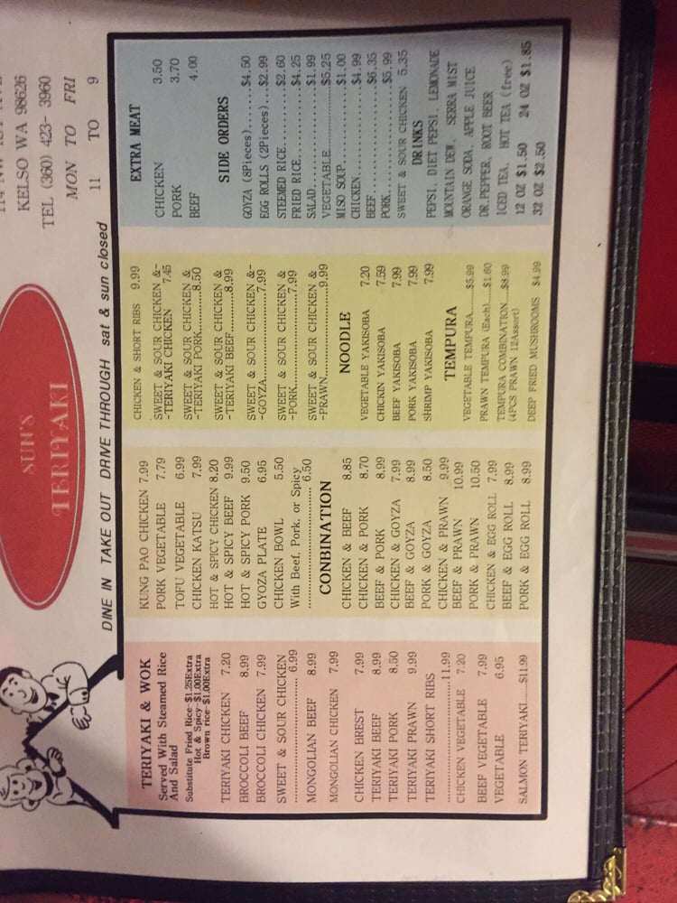 Welcome to Sun's Teriyaki, a delightful culinary gem located at 114 1st Ave NW, Kelso, WA. This Japanese eatery specializes in an array of authentic dishes that promise to tantalize your taste buds. Their menu features crowd favorites like Chicken Goyza, Chicken Teriyaki Sweet, and various Yakisoba options for both meat lovers and vegetarians alike.